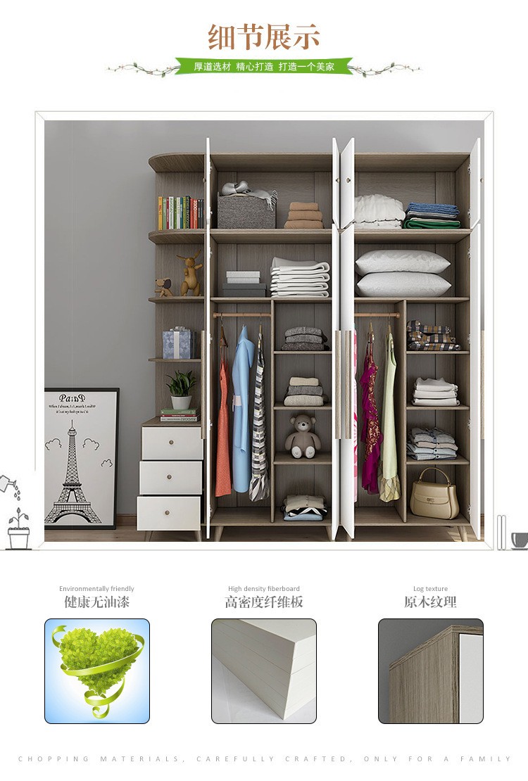 经济型北欧卧室二门三门简易整体组合实木衣柜