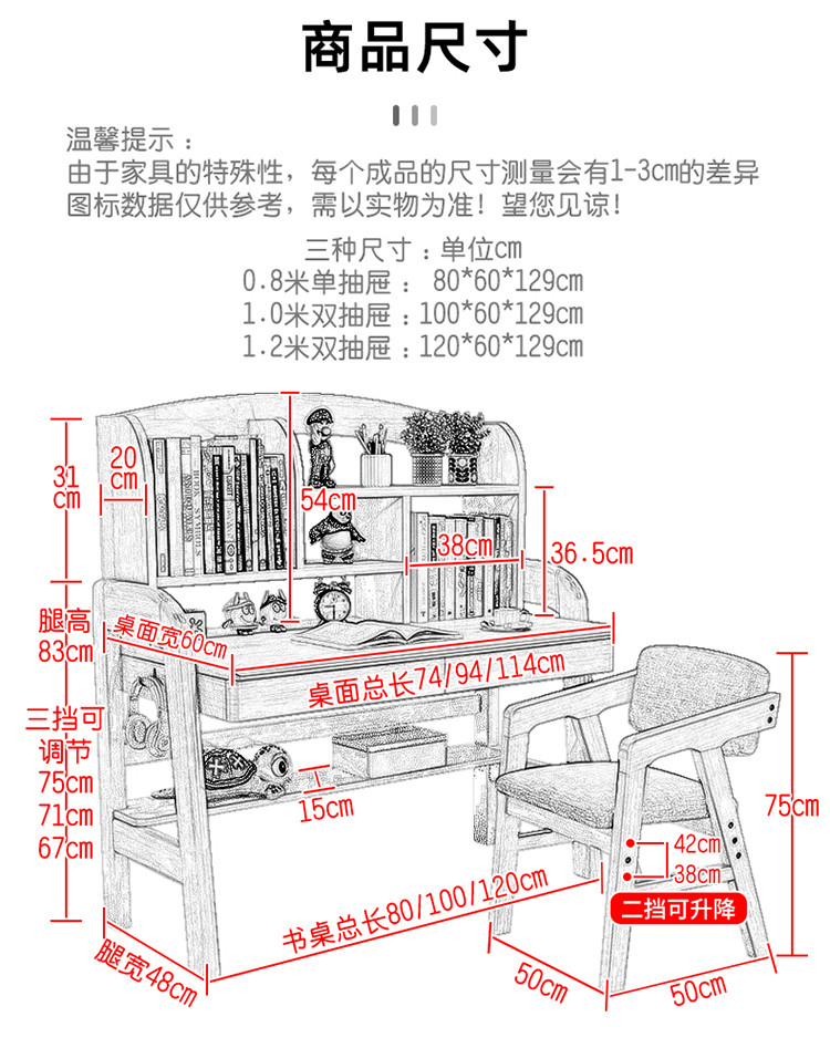 0.8米升降书桌+扶手升降椅