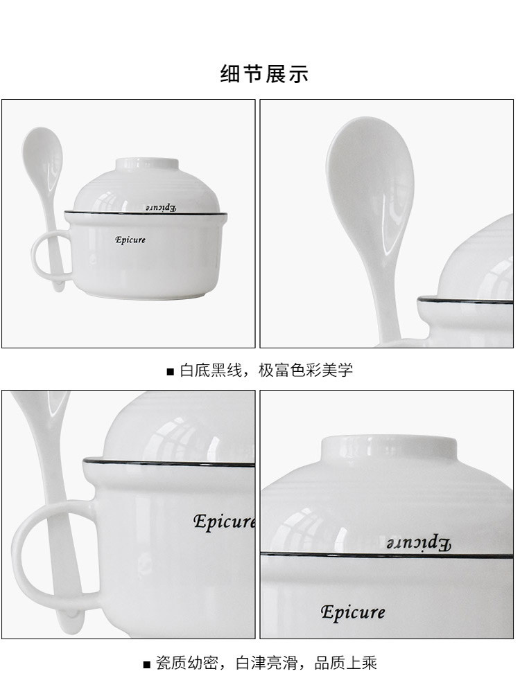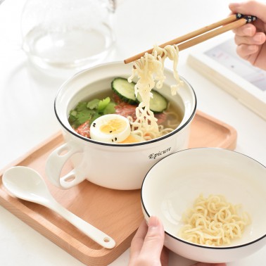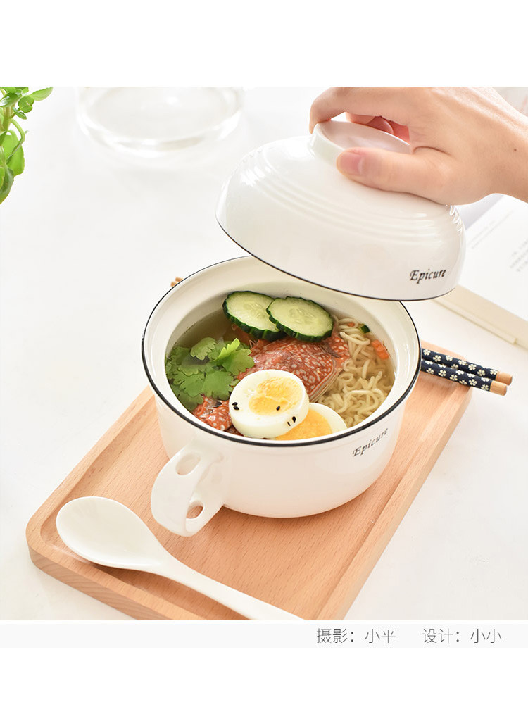 陶瓷饭碗泡面碗带盖带手柄方便面碗便当盒汤碗可微波炉