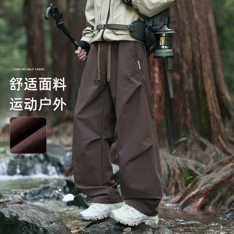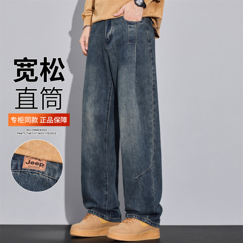 牛仔裤男秋冬季2025复古高街松紧腰拼接宽松直筒阔腿长裤子男