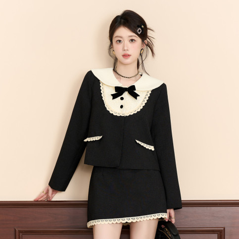 【法式套装】富家千金小香风套装裙女秋冬娃娃领上衣外套A字短裙