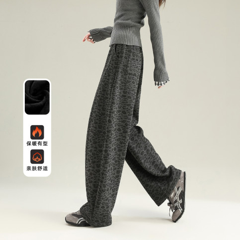 加绒加厚豹纹弯刀裤女裤2025秋冬季保暖垂感休闲阔腿糯米裤子