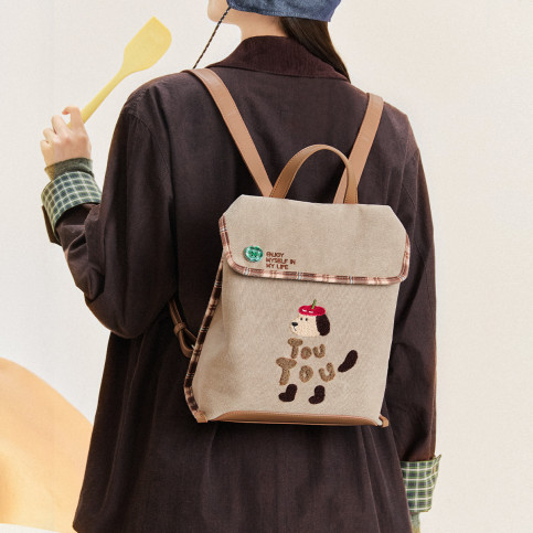 【帆布双肩包】樱桃小狗大容量背包通勤百搭女包出游轻便可爱书包