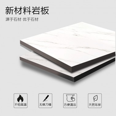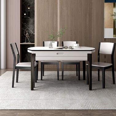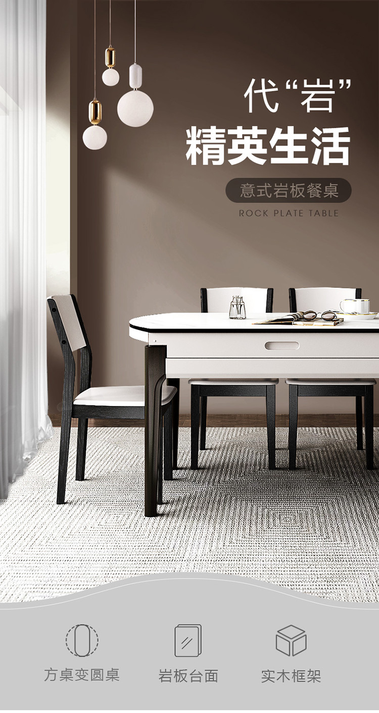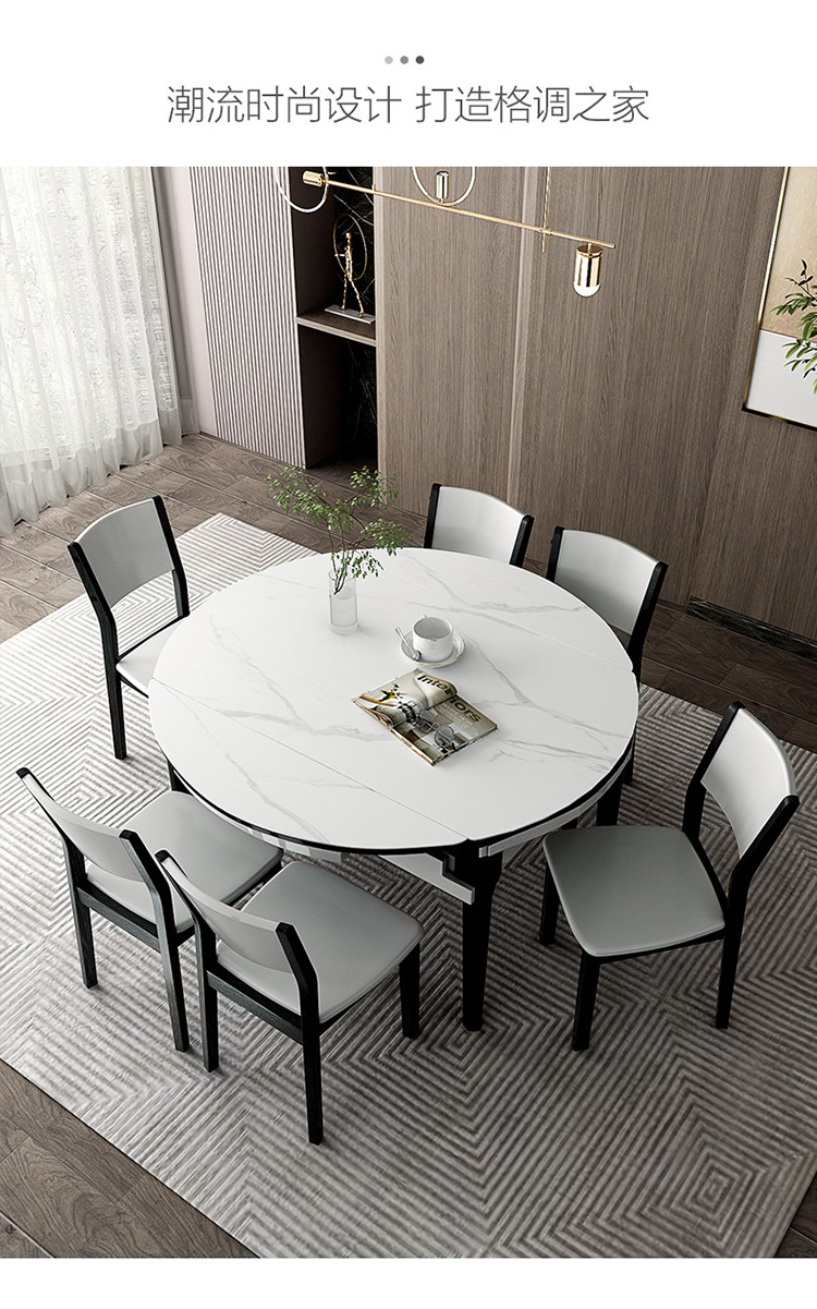 双虎家私 岩板餐桌伸缩家用小户型可变圆桌大理石纹轻奢餐桌椅