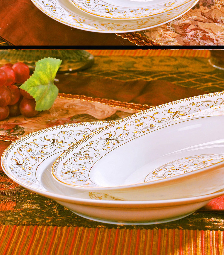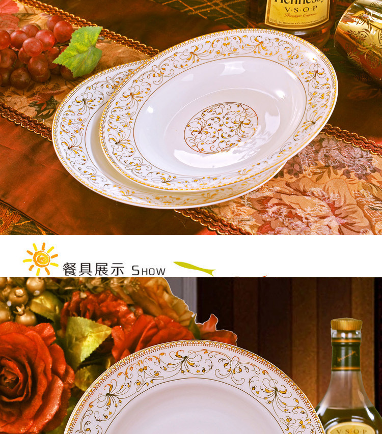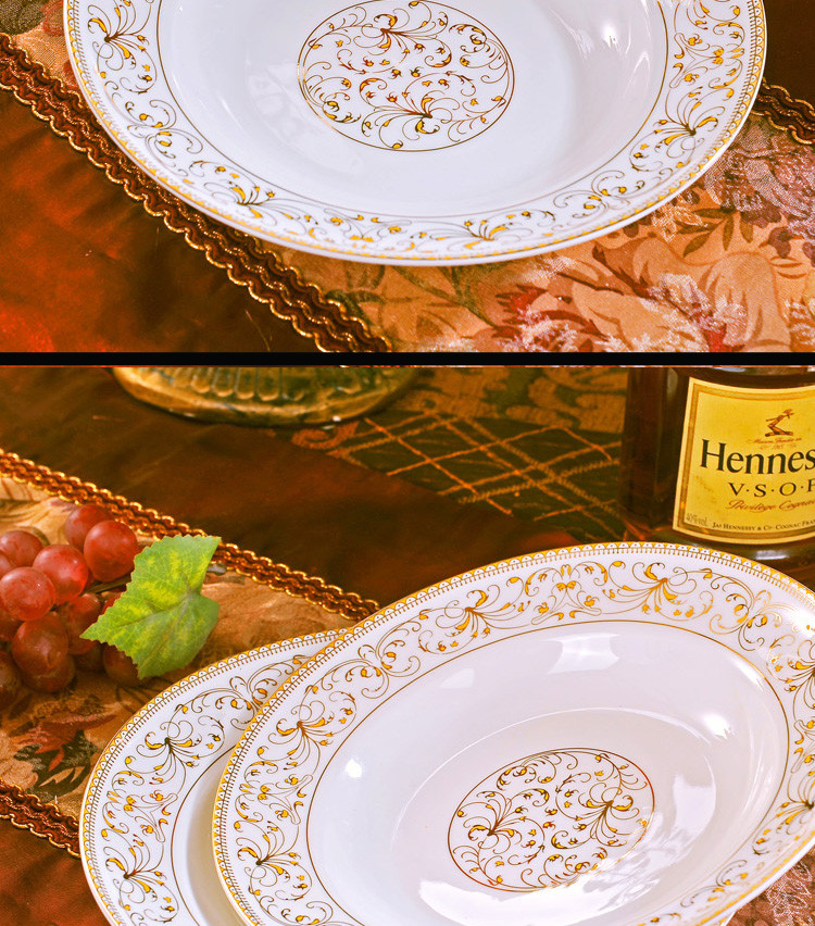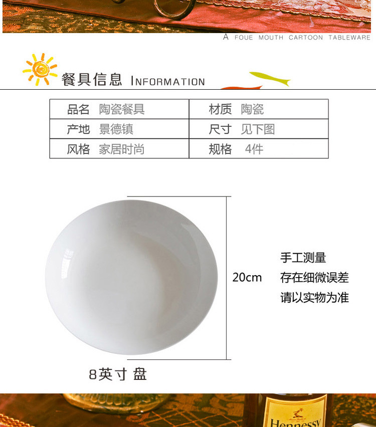 景德镇陶瓷盘餐具套装骨瓷8英寸深盘骨瓷家用盘子4件