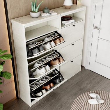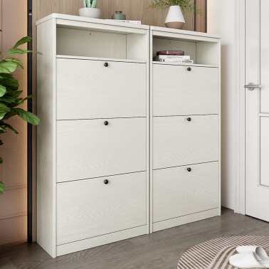 实木鞋柜家用门口超薄翻斗式鞋柜鞋橱全白色美式鞋柜