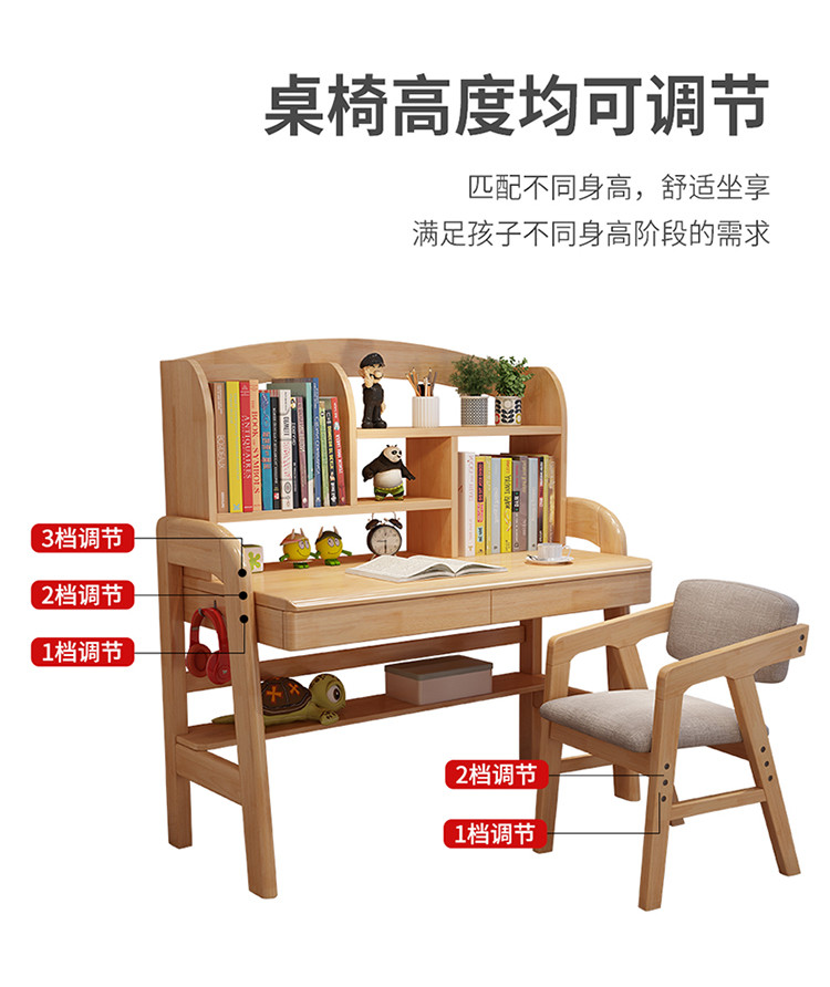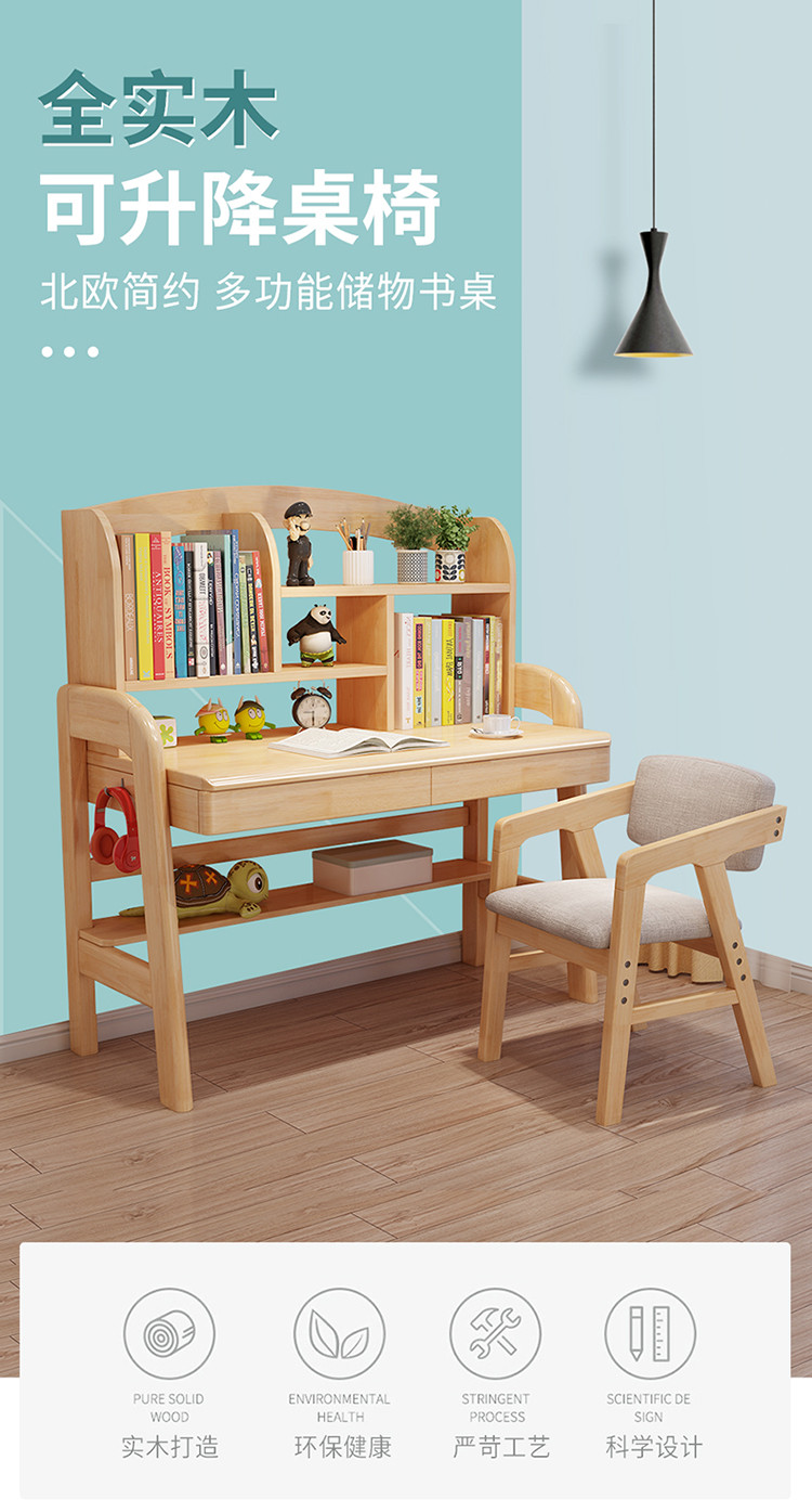 中小学生小孩学习桌家用儿童写字桌可升降实木书桌桌椅组合套装