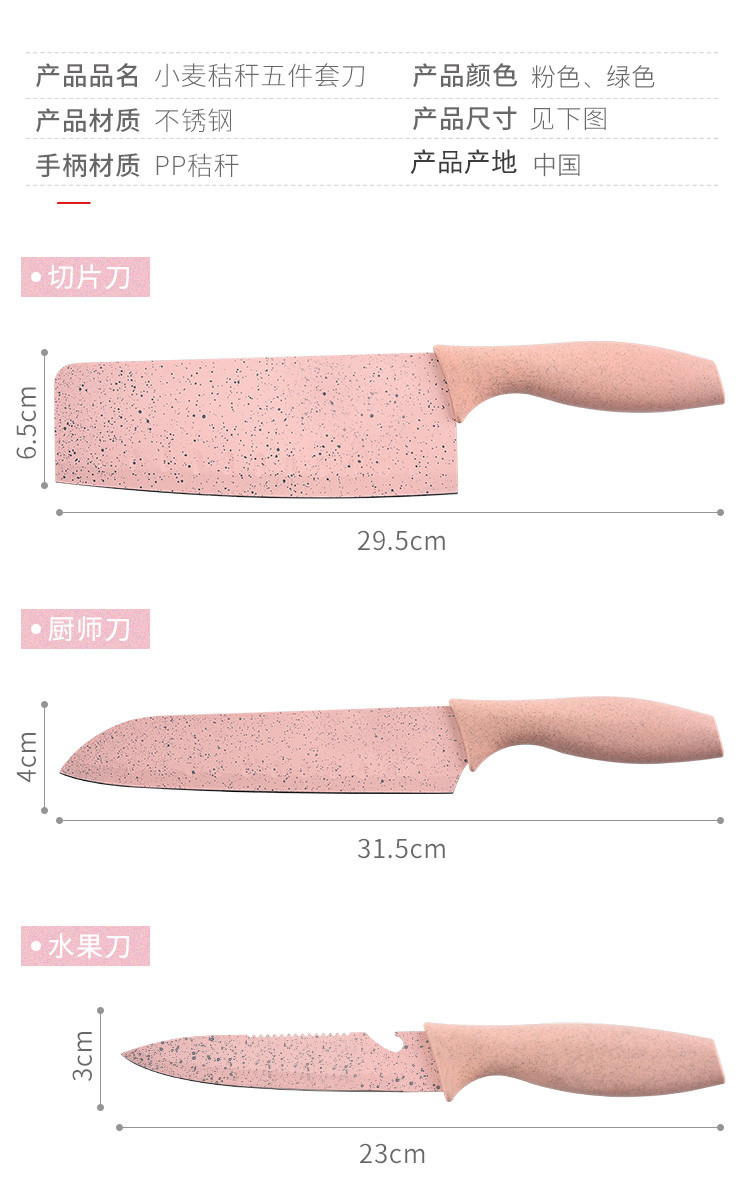 五件套厨房家用切水果小麦秸秆不锈钢菜刀水果刀剪刀刨刀刀具套装