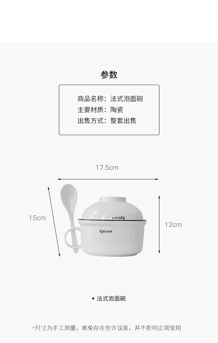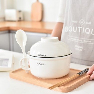 陶瓷饭碗泡面碗带盖带手柄方便面碗便当盒汤碗可微波炉