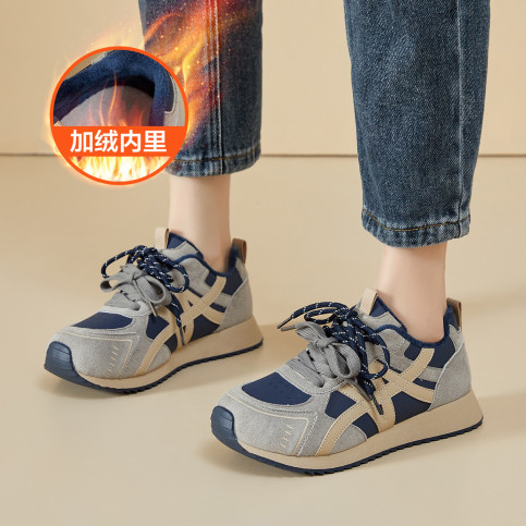 【冬季新品】复古休闲鞋女加绒保暖棉鞋百搭时尚学生平底德训鞋女